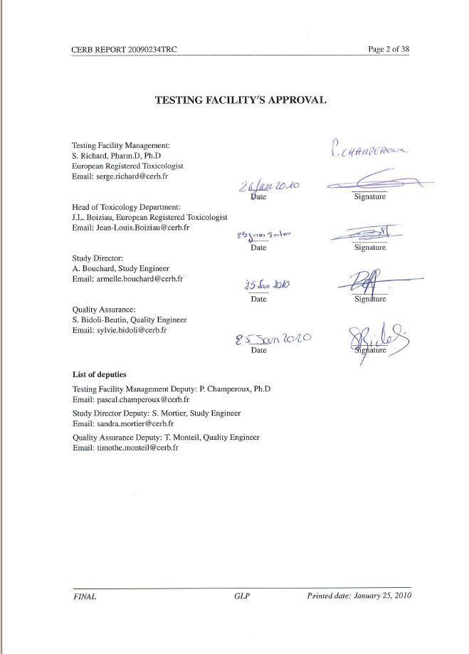 Les essais ci-dessous ont été demandés par la FDA (Food and Drug Administration ) pour exporter nos produits aux USA.